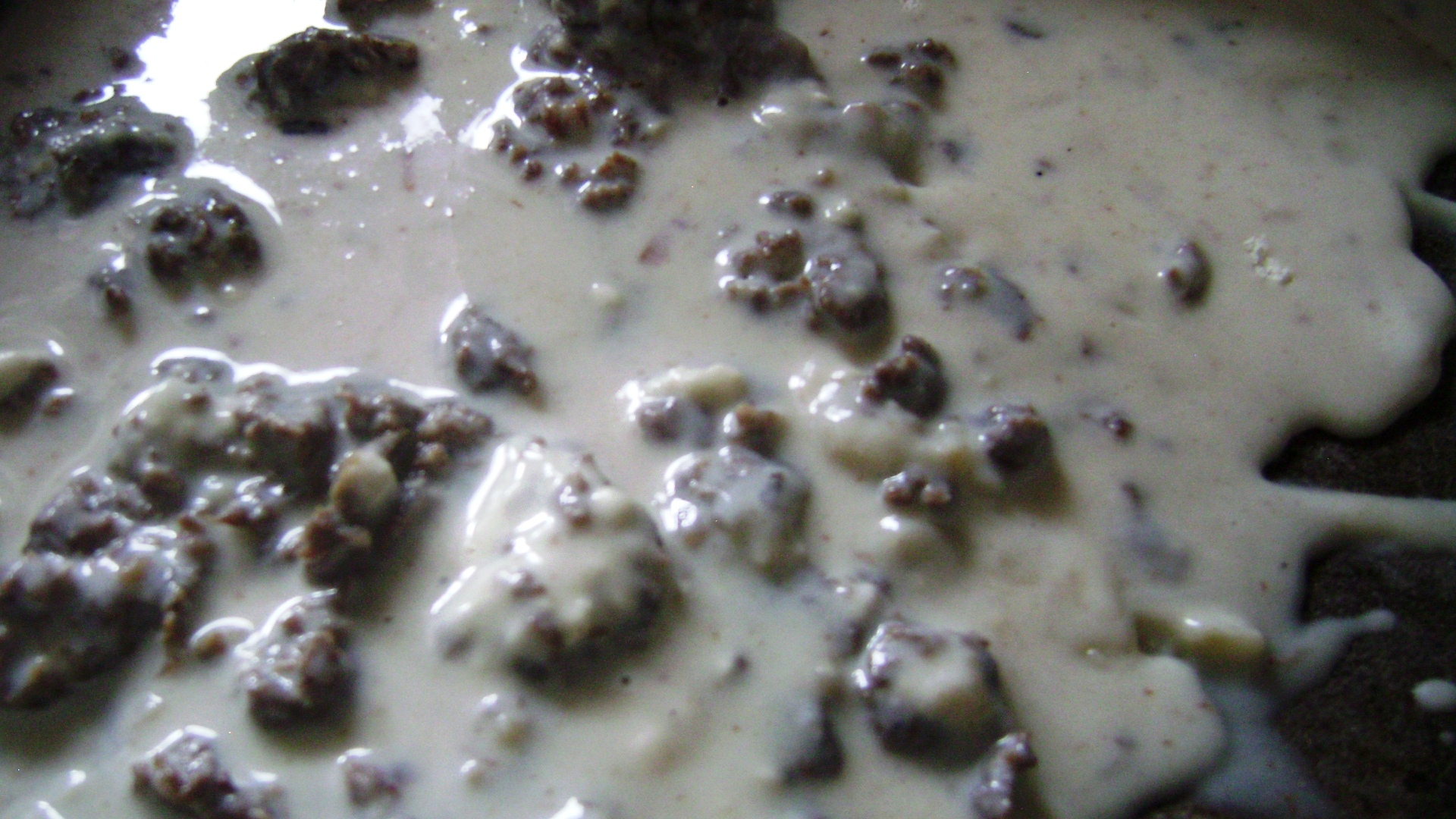 WHILE the biscuits are taking form in the oven, make your gravy.